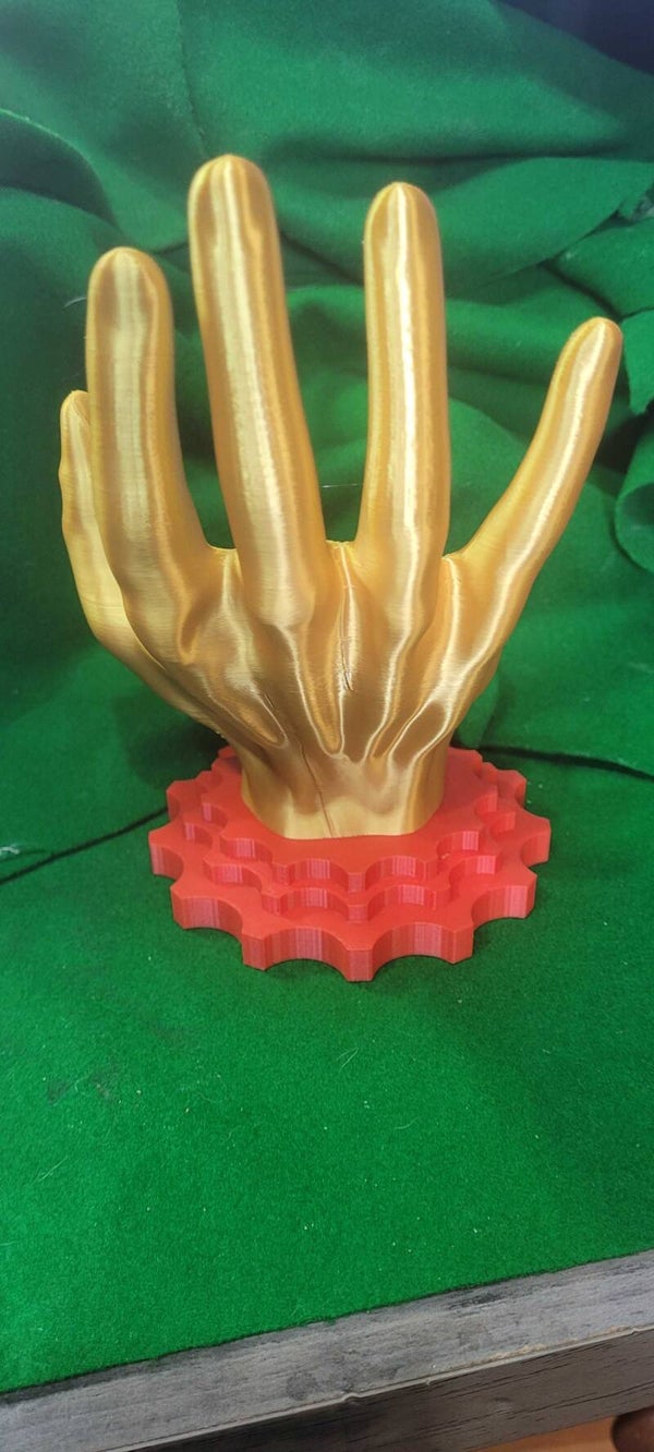 this is a 3d printed and designed by the artist it is very durable and can come in various colors of your choice.
